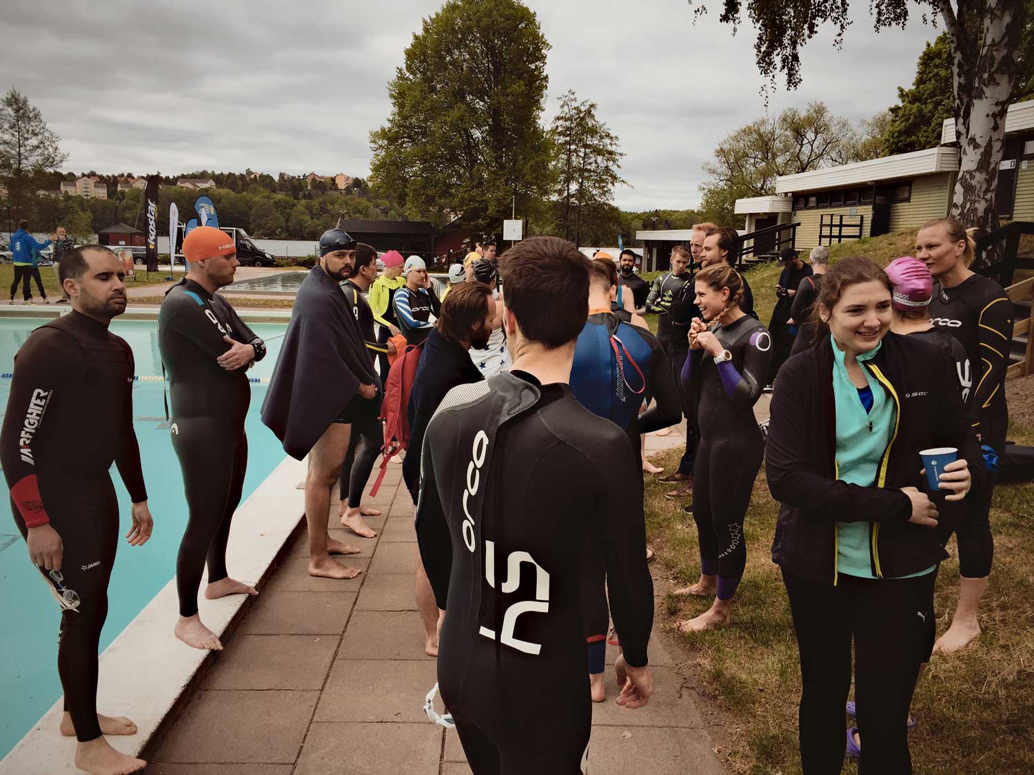Att jag gå på ett Try Triathlon får därför ses som ett unikum och hade det inte varit för att simfröken-Hasse hade hetsat Sofia att hetsa oss i simgruppen att gå så hade jag nog inte gått. Dessutom ett perfekt tillfälle att testa de nya våtdräkterna. (Jag testade swimrun-dräkten.) Och det ska sägas att vi stannade i vattnet när alla andra gick upp för att träna växlingar. Så att jag tränade triathlon kanske är att ta i. Men jag var i miljön så att säga. Och jag kanske eventuellt blev lite sugen på att testa triathlon. Eventuellt. Kanske ska min 40-årskris få bli att köra Ironman. Det ger mig 8 år att träna. Känns rimligt.